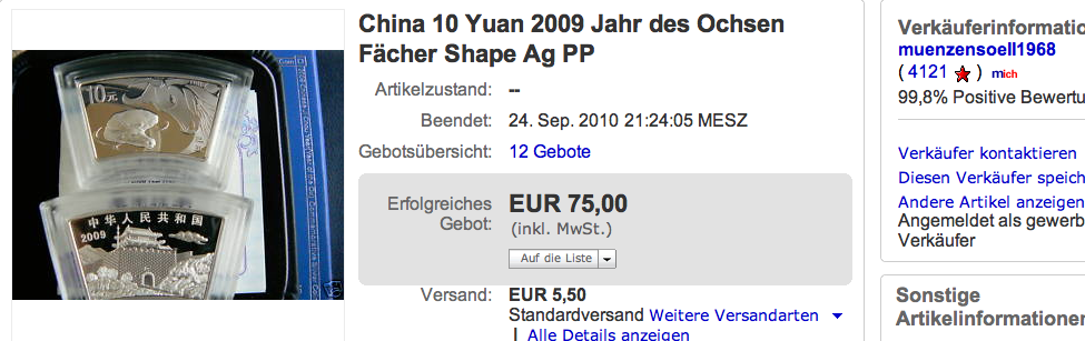 Hab mir nicht die Mühe gemacht, die letzten Seiten alle nochmal zu lesen und weiß deshalb nicht, ob die http://cgi.ebay.de/20-Yuan-Chi…illen&hash=item53e3c9e012 hier schon "gelistet" ist. Man darf aber gespannt sein, wohin sie will.