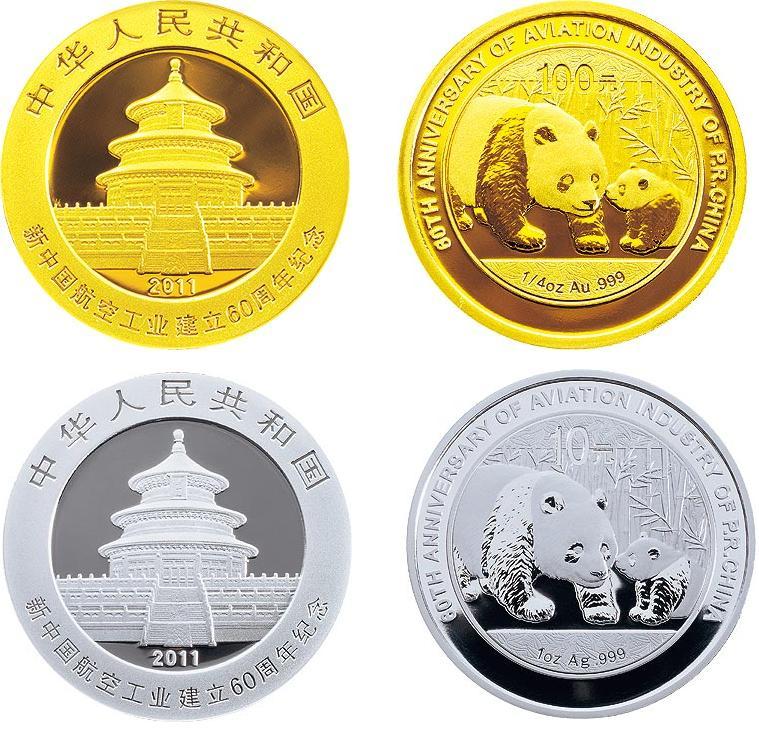 The 60th anniversary of the aviation industry, 1/4 oz Au (5.000), 1 oz Ag (20.000)