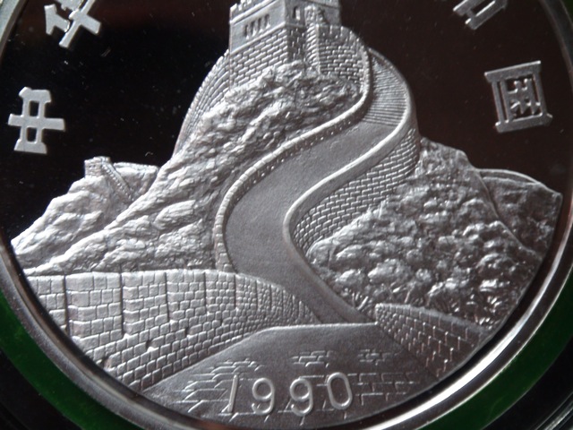 Ich bin mal hier wegen einer Qualitätsfrage. Unten angefügt findet ihr Bilder des 150 Yuan Drachen & Phoenix 1990. Leider hat die Münze auf der Rückseite bei der Großen Mauer auf 13 Uhr einen großen weißen Fleck. Auf der Vorderseite der Münze sind leider auch noch einige feine weiße Flecken zu sehen. Die Preisfindung ist für solche Münzen ohnehin schon sehr schwierig, aber wie schätzt ihr die Auswirkungen der weißen Flecken auf den Preis ein?