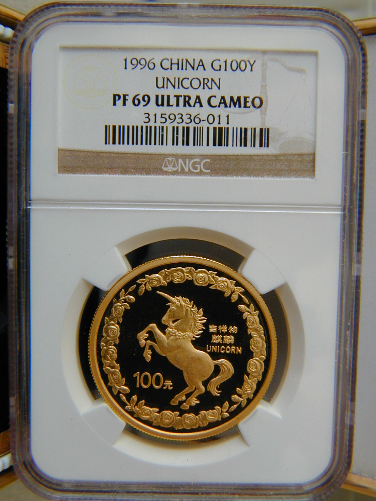 Unicorn 1995 10 Yuan PP Silber Fälschung? Das Zertifikat mit der eckigen Umrahmung ist das richtige Original, das Deckt sich auch mit diversen Gold Unicorn Zertifikaten aus 1995.