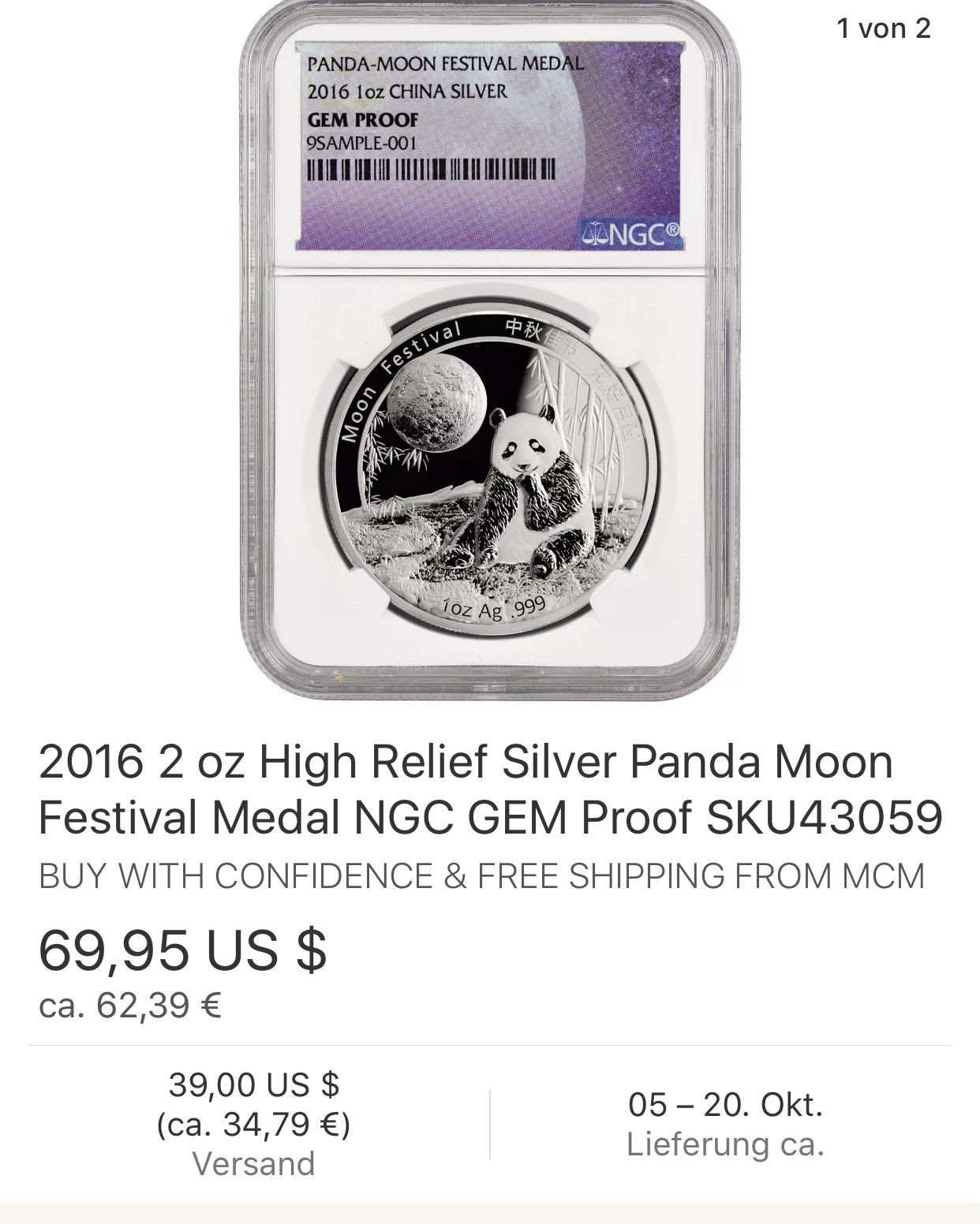 Soll ja eine original Mint Ausgsben Medaille sein - Mal sehen was die unter OGP verstehen...