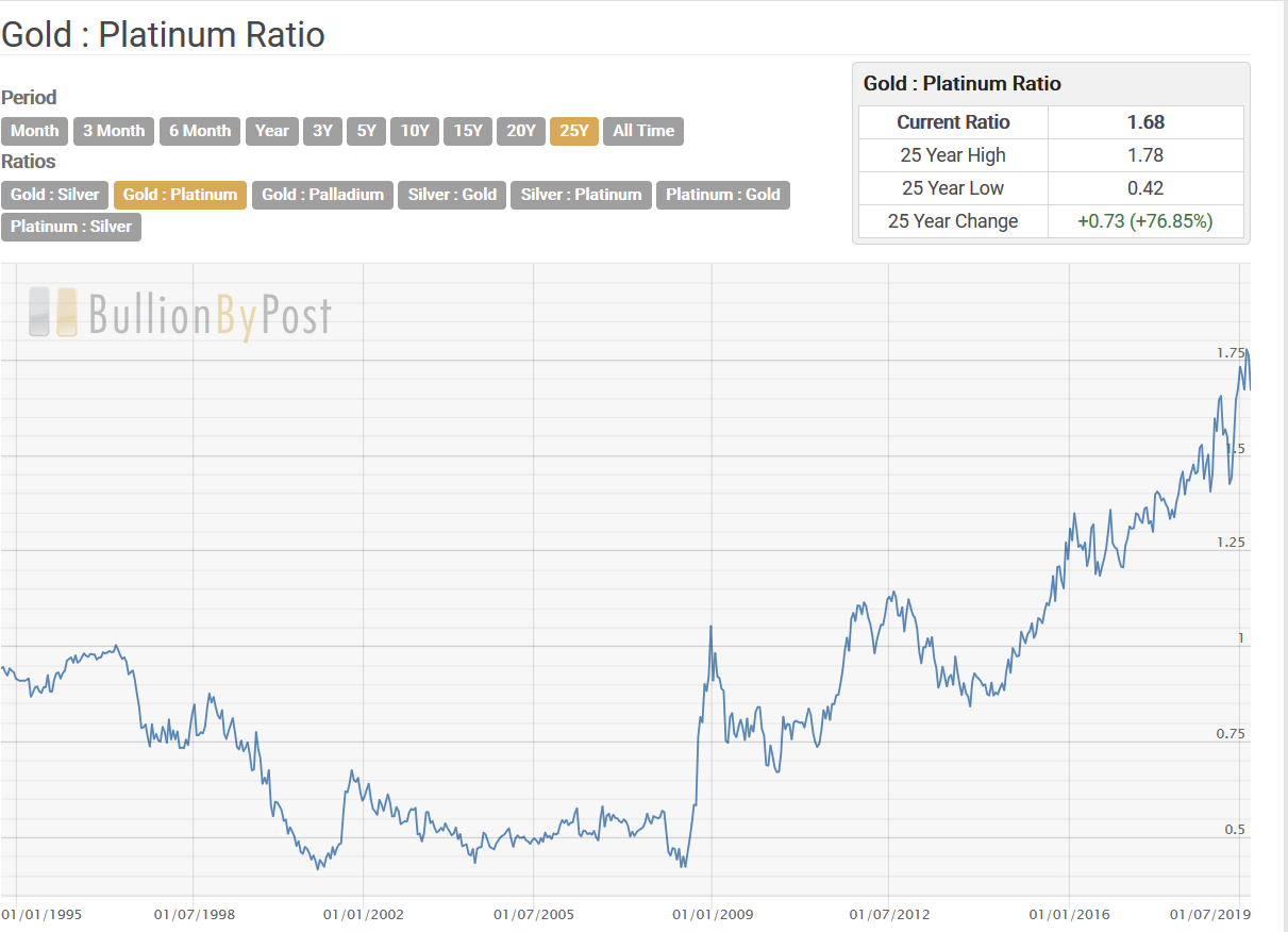 Nach diesem Ansatz ist Platin relativ anderen Edelmetallen sehr, sehr niedrig bewertet.