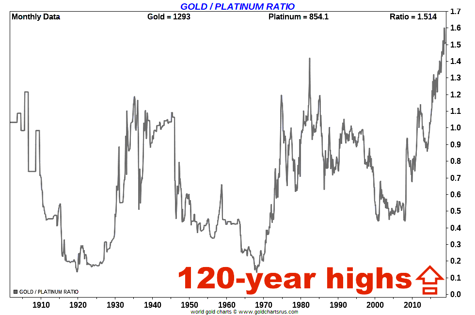 ob Platin jetzt weiter steigt weil im Vergleich zu Gold historisch billig?
