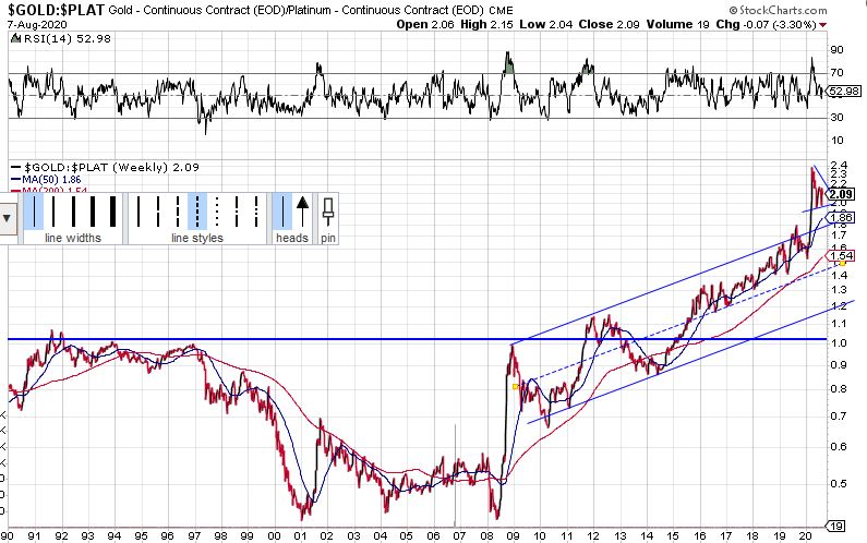 ob Platin jetzt weiter steigt weil im Vergleich zu Gold historisch billig?