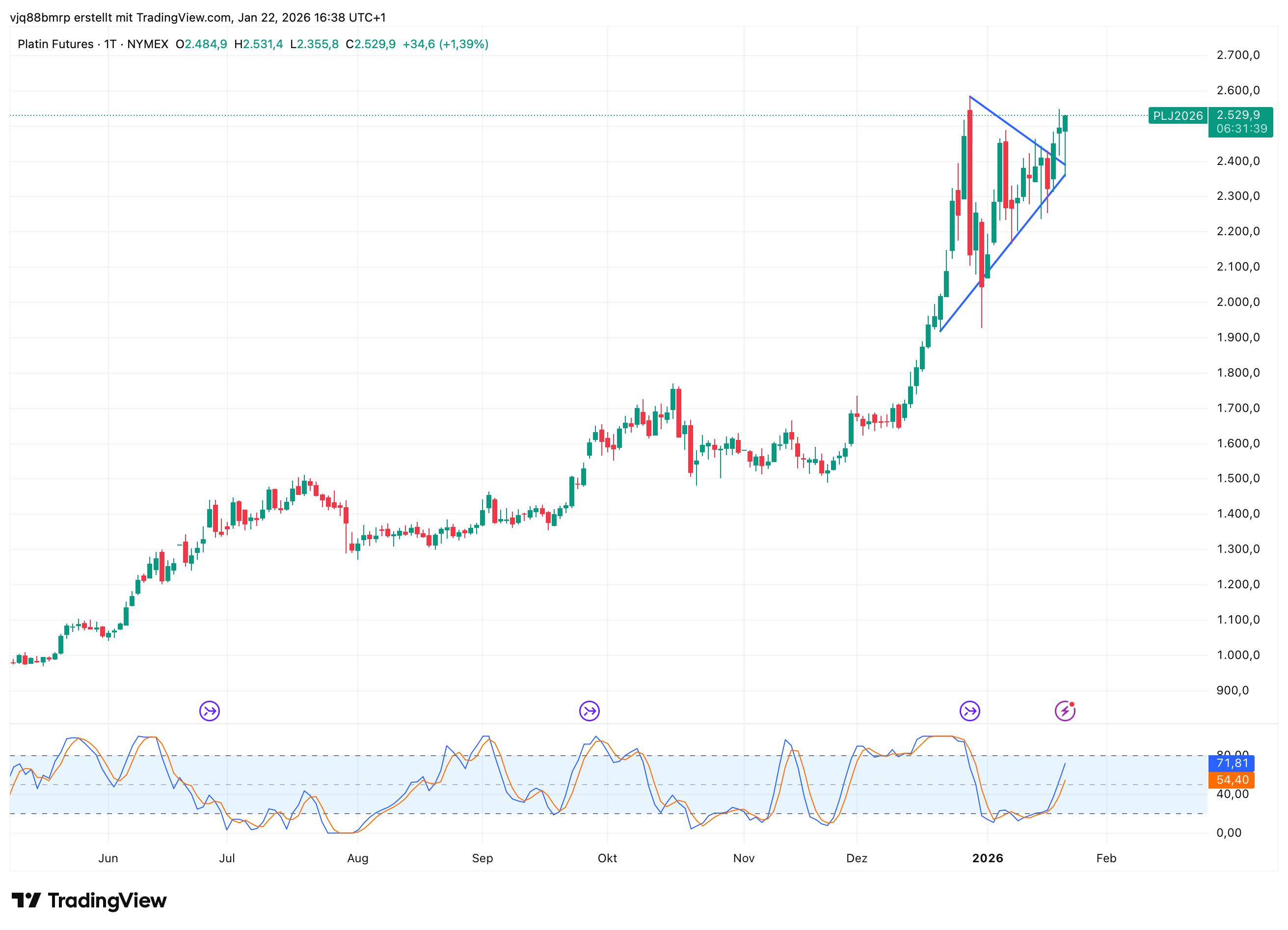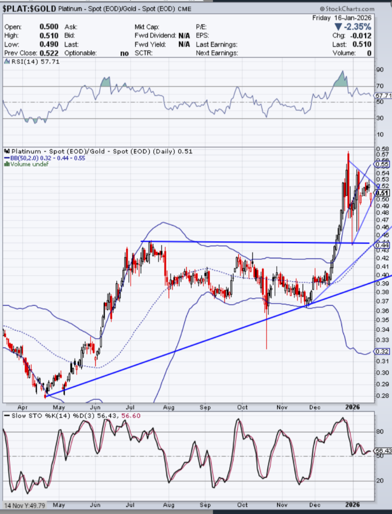 Alles anzeigenPlatin gegen Gold nicht viel Neues, nachdem das Jahhunderttief (ich denke dass es eins war?) bei 0,28 in April/Mai 2025 sprunghaft nach oben verlassen wurde. Im Moment zwischen 0,44 bis 0,55.