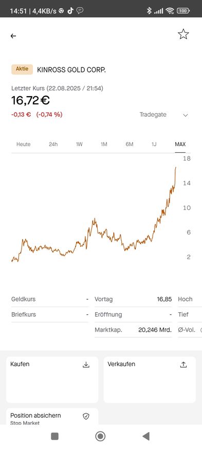 • Ja, Kinross entwickelt sich unglaublich trotz der hohen Abschreibungen durch den Rußland-Rückzug, der einen herben Verlust mit sich brachte :!: