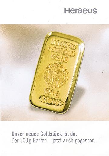 Ein schöner Barren ist es aber trotzdem und der Verkäufer scheint auch zuverlässig zu sein - gibt es hier im Forum jemanden der solch einen 100g gegossenen Goldbarren von Hereaus hat ??