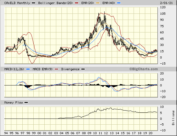 Hier der Langzeitchart von ELD bei BigCharts, in dem die Kaptalmaßnahmen erfaßt sind.