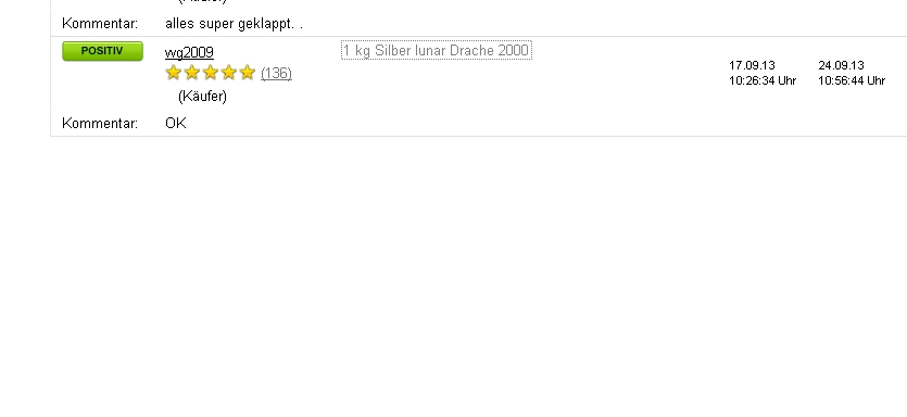 Vielleicht ( wahrscheinlich ) hat doch alles geklappt -- jedenfalls hat der Käufer den Deal positiv bewertet: -