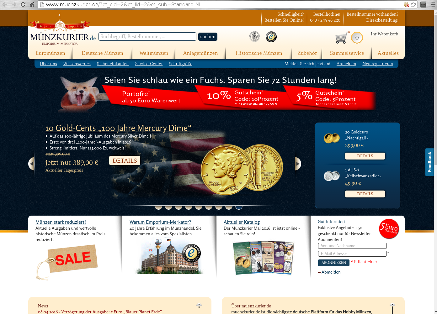 10 % rabatt auf eine ohnehin schon verhältnismäßig günstige Münze, zudem versandkostenfrei und auf Rechnung...