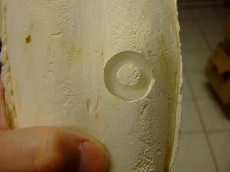 Zuerst wird mittels eines Plastikrohres mit dem richtigen Durchmesser eine grobe Form in eine Ossa Sepia Schale gedrückt, bzw vorsichtig gehämmert, dann wird diese Form mittels diversester Werzeuge, Kratzzeug und Fräsern so weit vergrößert, dass sie den Ansprüchen entspricht.