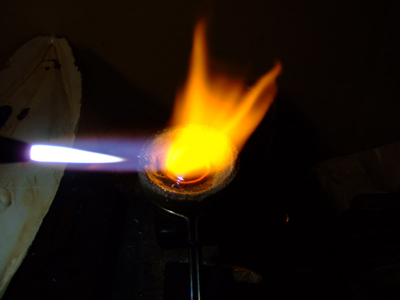 Dann mit dem Brenner das Silber schmelzen.