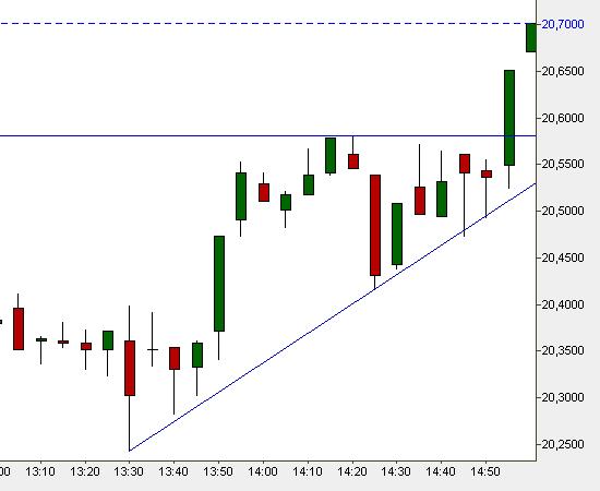 Silber bricht aus auf 20,65. Möglicherweise wird das heutige Hoch von 20,85 angesteuert. Mal sehen, ob es klappt.