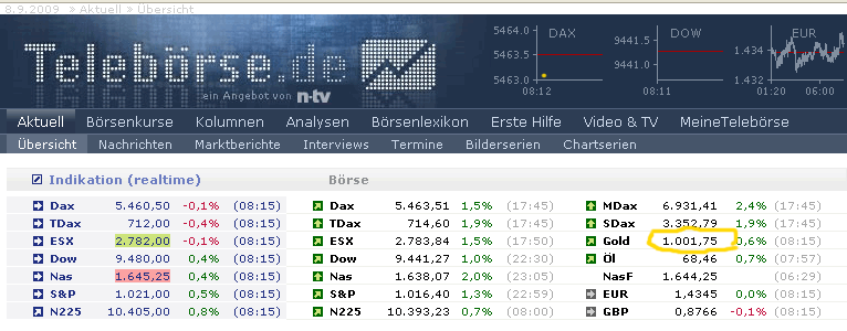 Achso ich schau meistens Realtime über finanzen.net. Da steht der Preis inzwischen bei 1002,30$. Kann jetzt aber nicht beurteilen was genauer/richtig ist.