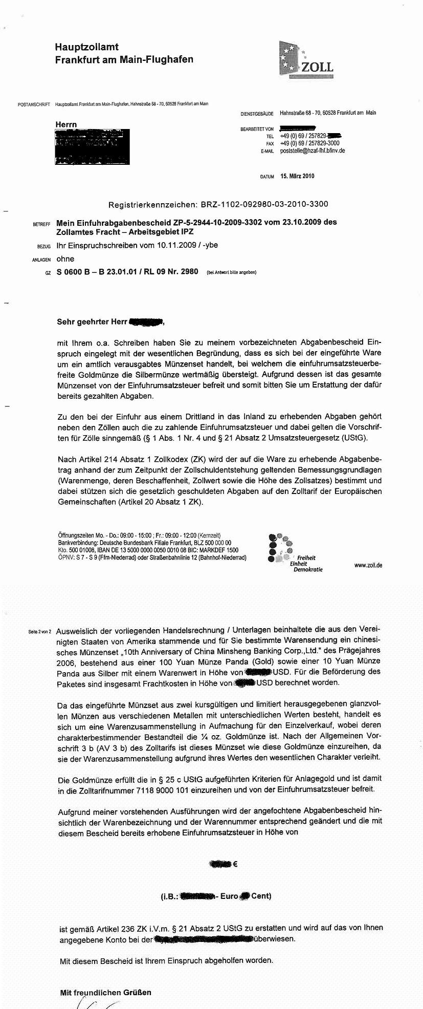 und Einfuhrumsatzsteuer bezahlt haben , Ihren Bescheid nochmal anhand der oben genannten