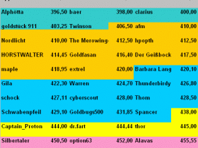 Im Endspurt liegt ja Goldfasan richtig gut, gefolgt vom Geißbock und Horstwalter. Ein guter Tip,leider habe ich mit meinen 412,50 das Ziel verpasst.