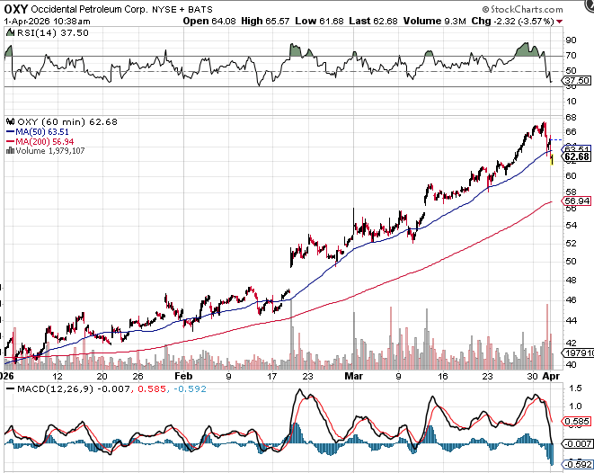 • Was mir bei OXY sehr zu denken gibt, ist dass Warren Buffet den Laden in grossem Stil im Schnitt bei 55 USD gekauft und da hatten wir noch keine Hormuz zu. Alos kaum weg vom jetzigen Niveau. Aber ich bei kein ÖL oder Ölunternhemenspezialist um das zu beurteilen und halte im Moment kein oder noch kein OXY.
