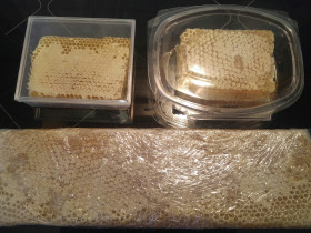 Das "flüssige Gold lässt sich aber auch prima in seiner natürlichen Verpackungsform, der Honigwabe vermarkten und lagern. Ca. 25 % meines Honigs verkaufe ich inzwischen als Wabenhonig. Das erspart dem Imker viel Zeit und Geld(keine Investition in einer Honigschleuder und weniger Arbeit). Die Biene muss dafür halt etwas mehr schaffen ![]()