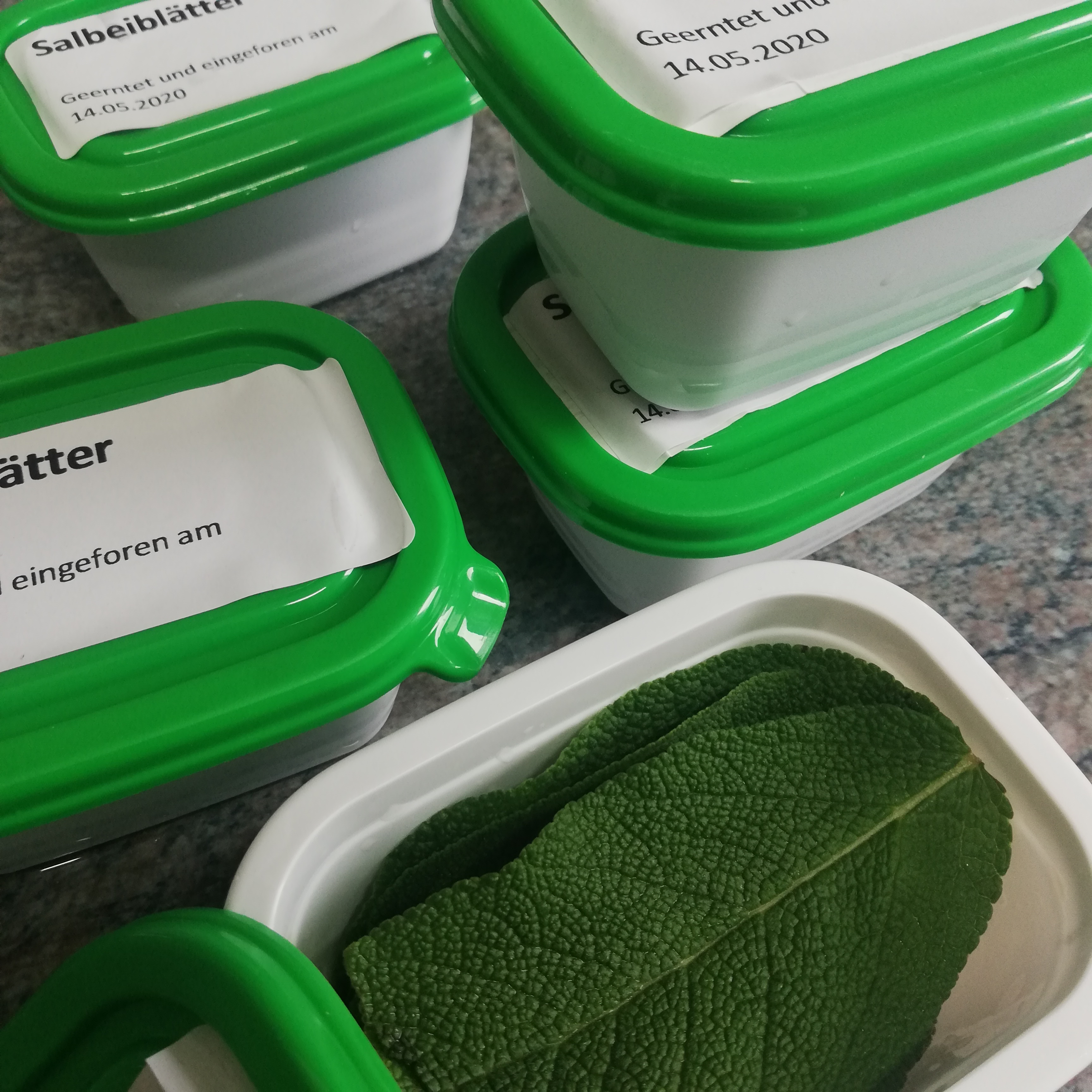 Ab in den Garten, Mädels, die erste Salbei-Ernte steht an! Dann kann man bis zur Blüte im August immer wieder nachernten. Nachher geht zwar auch, aber der Salbei ist dann nicht mehr wirklich salbeiisch im Geschmack.