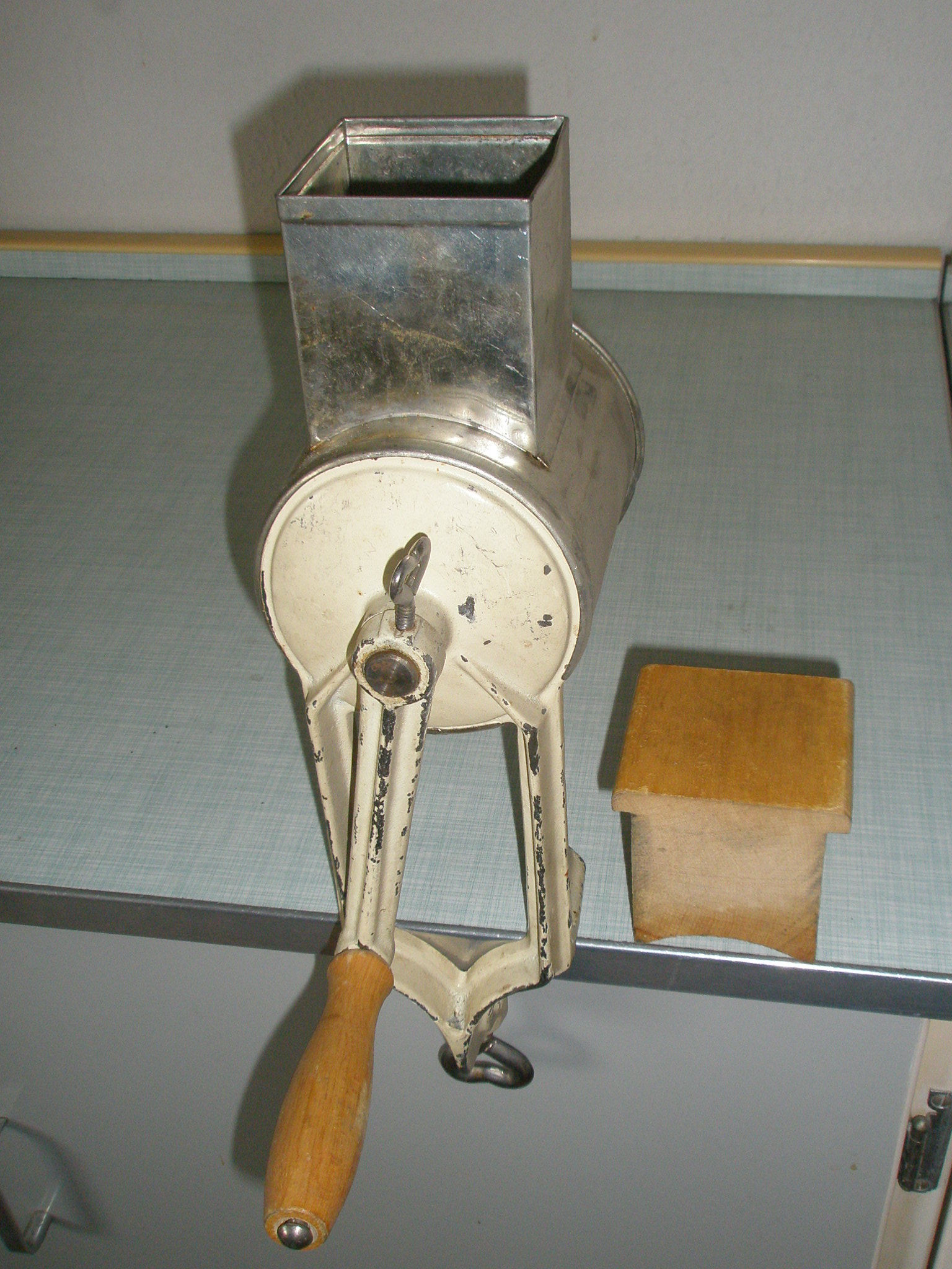 eine Nuss-Raspel für Mandeln, Haselnüsse usw. War wohl mehr für Weihnachtsgebäck oder