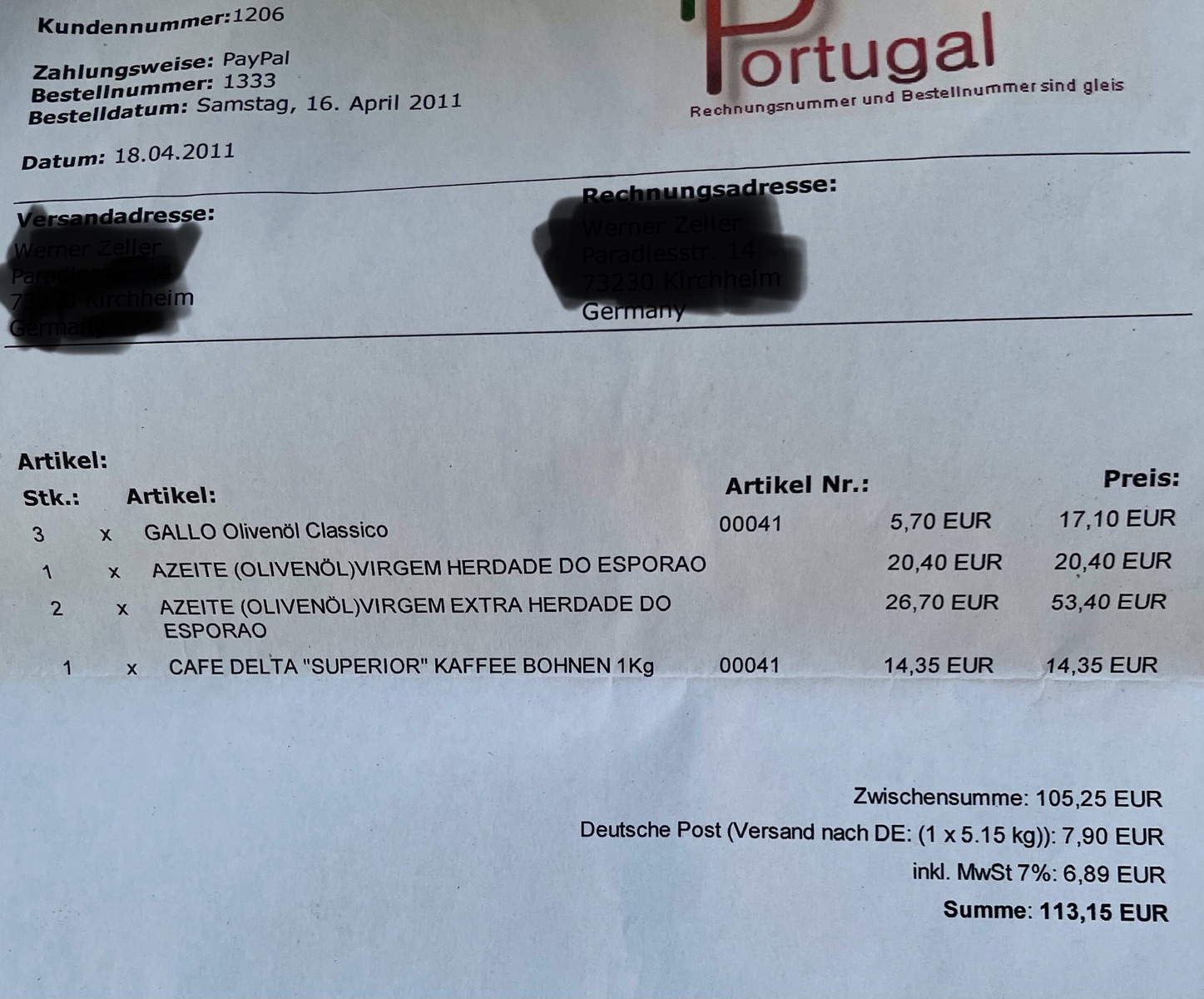 Ich hab‘ den Karton jetzt vollends ausgepackt und eine Rechnung gefunden: