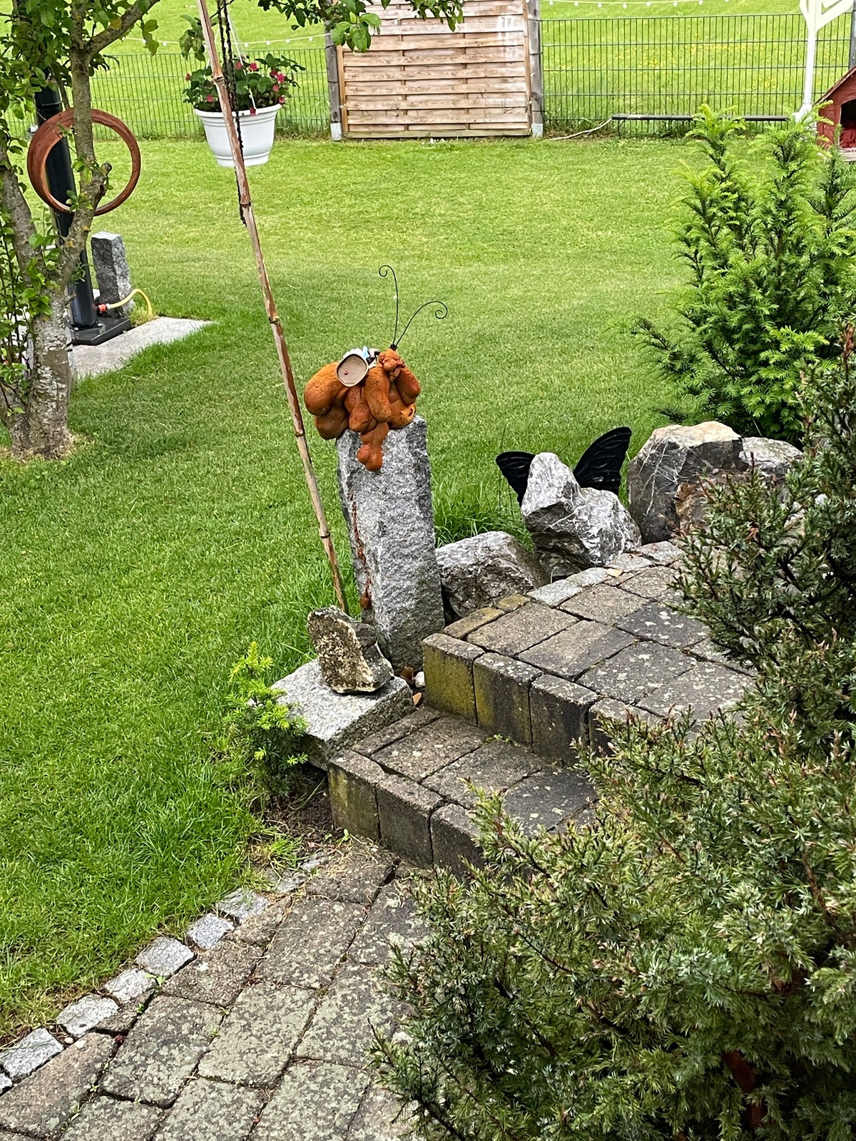 Ich habe dann trotzdem die obere Schicht abgetragen, mit Kompost, Pflanzerde, etwas Perlit, Hornspänen ,Pferdedung (sorry Maus ) und eine Hand Bio-Volldünger vermischt…jetzt schau‘n mr mal dann seh‘n mr schon.
