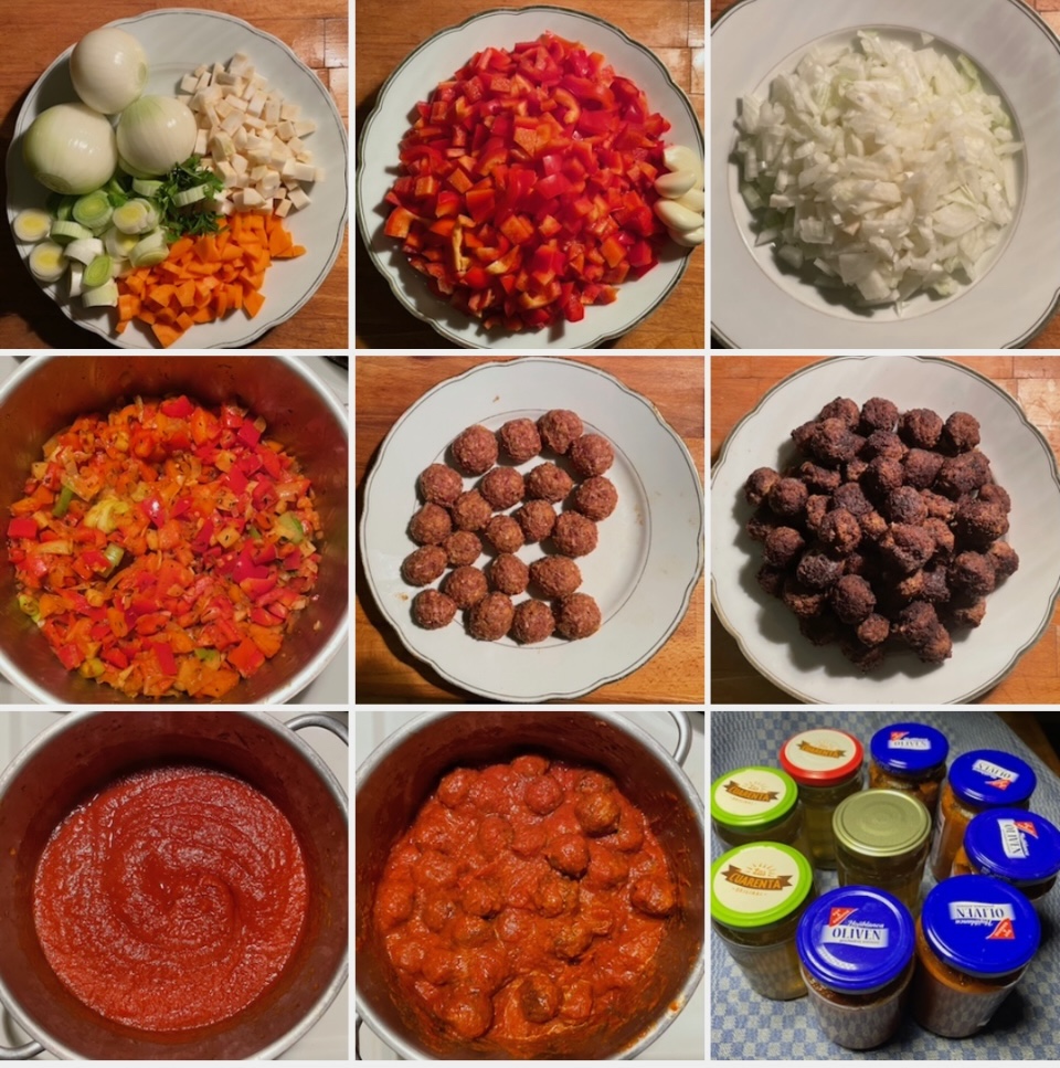 Hackbällchen in Zigeunersauce in die blauen, in die anderen kam das Flüssige.
