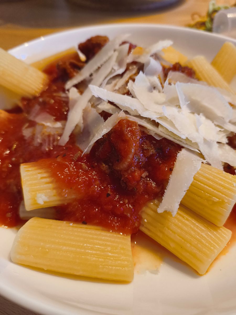 gestern gabs Pasta mit tomatenbasierter Sauce aus dem Glas.