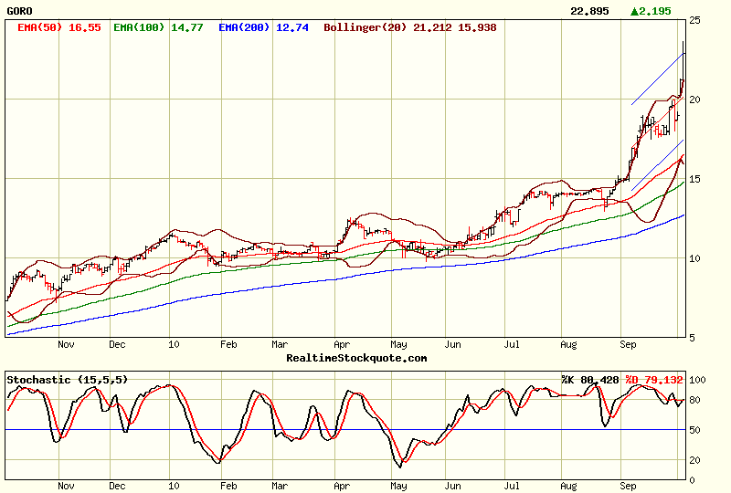 Man kann den gestrigen Tag natuerlich auch als Retest der Gap-Oberkante werten. Das waere ein markanter Ausdruck von Staerke und der Aktie durchaus zuzutrauen. Nur bleibe ich beim Gesamtmarkt vorsichtig und rechne nach wie vor mit einer Korrektur des gesamten Sektors. Oder besser: mit einem "Korrektuerchen" von Gold und v.a. Silber. Dann waeren wir bei Goro bei den von mir gewuenschen 19 CAD.