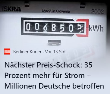 Diese Preisexplosion geht einzig und allein auf die grenzenlose Dummheit und idiogische Verblendung der Po*litiker zurück. Sämtliche Kraftwerke (u. a. das modernste Kohlekraftwerk der Welt) abschalten, die Steuern/Abgaben extrem raufsetzen und sich dann über diese Preise wundern. Das laute Rufen: "Putin wars" bringt nichts! Es ist die Grüne Inflation
