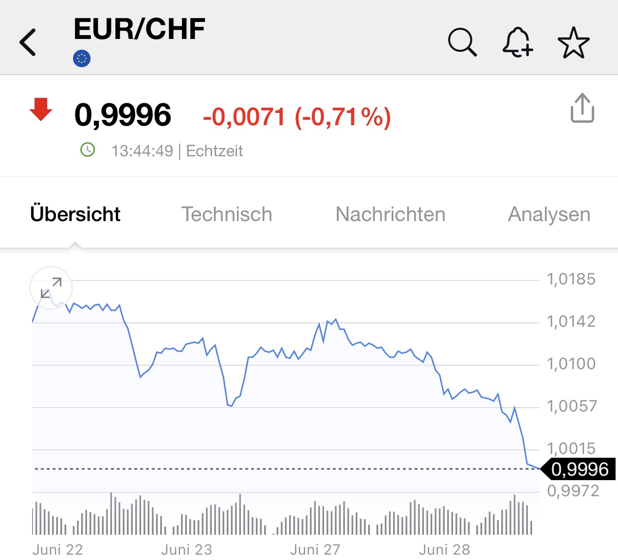 Der Euro ist derzeit weniger als der SFR wert. Dann dürfte als nächstes der USD folgen.
