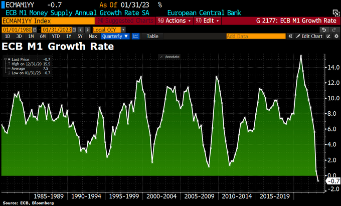 Geldmenge M1 schrumpft (!!!) um 0,7% zum Vorjahr (zuvor +0,6%)