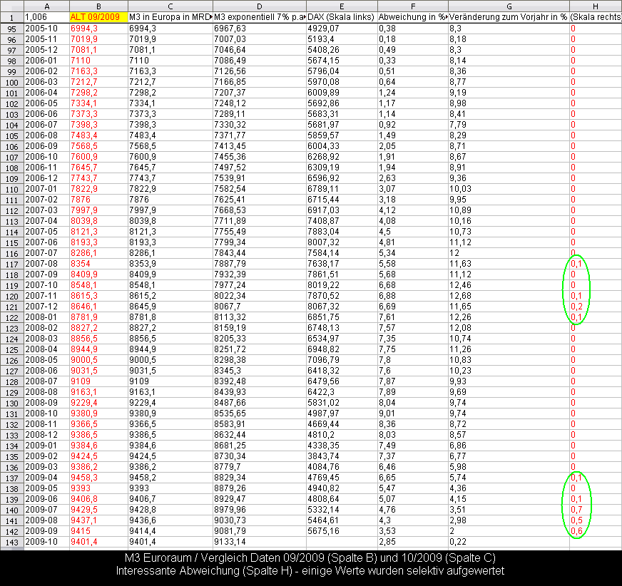 Wobei wir oben angekommen sind, jetzt geht's mit M3 sogar langsam abwaerts. Peak im April, seitdem schrumpft M3 sogar. Saisonale Effekte sind hier schon rausgenommen worden, denn die Zahlen sind saisonal justiert !