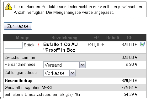 gestern z.b waren nur noch 4 stk 5 oz lunare da, die hab ich dann bestellt, Kurze zeit später waren dann wieder welche vorhanden...., warum nicht gleich dann hätte ich auch mehr bestellt..
