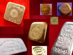 Ich hänge anbei nochmals eine kleine Fotomontage aus eigenen Bildern an - versch. Rothschlid B. 10-100g mit ihren unterschiedlichen Stempel - sowie der 10g Barren in Szene.