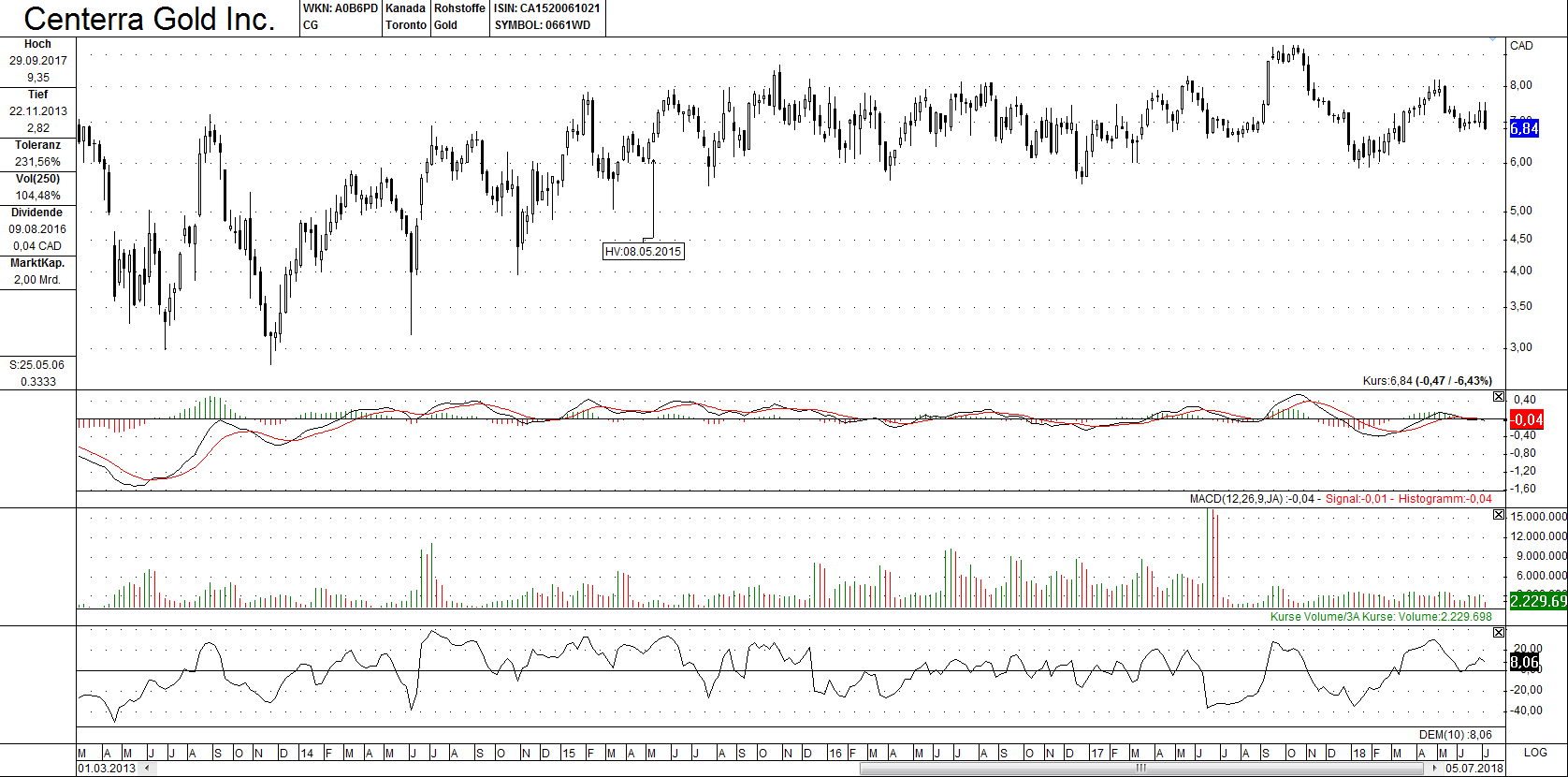 Und wenn man die oben errechneten 10 % vom Schlusskurs des 04.07.2018 abzieht, landet man bei 6,77/78 C$.