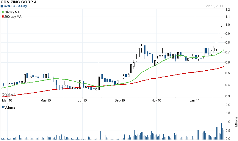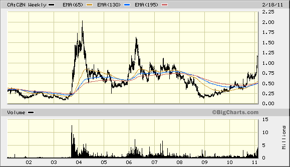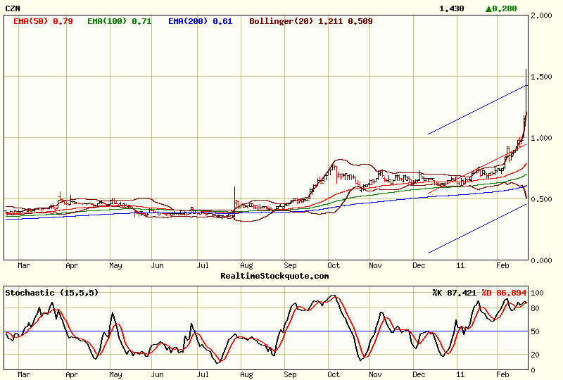 Sehr interessant, Lucky. Wie die Zeit vergeht ! Dachte mir, die CZN käme nie richtig in Gang, hatte die letzten Stücke im Mai 2007 zu 1,05 C$ verkauft.