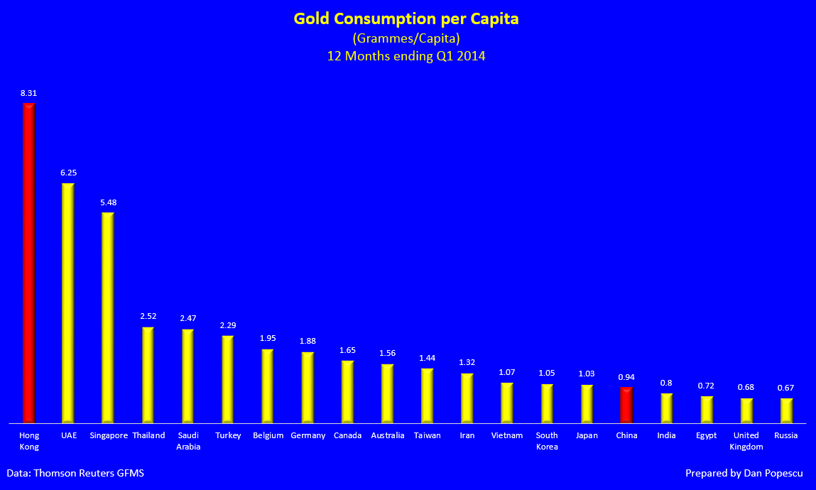 Im Goldkonsum pro Einwohner taucht die ehedem führende Nation nicht mehr unter den ersten 20 Nationen auf, sh.Grafik...