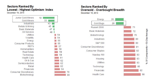„...Both Energy and Gold Mining sectors have single digit percentage of components trading above their respective 200 day moving averages. This basically means, both are extremely oversold right now.