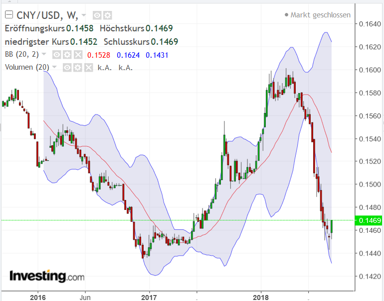 Im Wochenchart hat er CNY zum USD eine wichtige Untertützung erreicht.