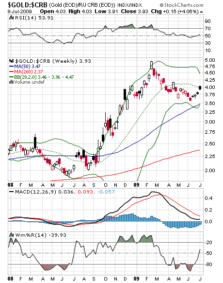 Aktuell ist gerade diese Investmentnachfrage schwach: Seit Anfang Juni sind die Goldbestände im SPDR Gold Trust sogar um 24 Tonnen gefallen. Aber auch von anderer Seite fehlen die Impulse: der US Dollar hat sich seit Mitte Mai bei 1,40 EUR-USD stabilisiert, die Preissteigerungsraten sind in den Industrieländern größtenteils negativ, zumal auch der zuletzt wieder spürbar gefallene Ölpreis die Teuerung dämpft. Auch die spekulativen Anleger sind in den letzten zwei Wochen vorsichtiger geworden. Sie haben ihre Netto-Long Positionen leicht abgebaut.