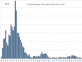 Um den Mittelwert genau zu bestimmen, müsste ich Tabellenkalkulation anschmeissen und durchrechnen... aber optisch vom oberen Chart sieht es nach 450$ aus - für Zeitraum 20 bis 25+Jahre. Frühere Zeiträume mit Goldstandard sind praktisch nicht aussagekräftig - da nicht vergleichbar.