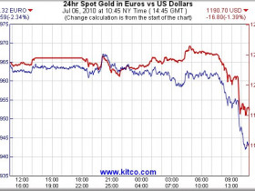 Mich ärgert vor allem, daß ich gestern den "seltsamen" Kursverlauf fälschlicherweise als Ende eines kleinen Zwischendips interpretiert und noch fix ein paar Sovereigns für ca. 235,- €/Stck. nachgebunkert hatte. Wäre gestern der Kursverlauf von heute gewesen, hätte ich noch morgen abgewartet...