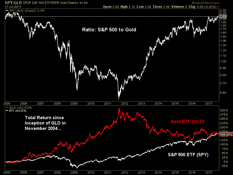 2009 und 2011 war der S&P 500 im Verhältnis zu Gold günstig. Bei einer aktuellen Quote von ca. 2 ist Gold m.E wieder attraktiver.[Blockierte Grafik: https://charts.stocktwits.com/…inal_88497435.?1499825747]