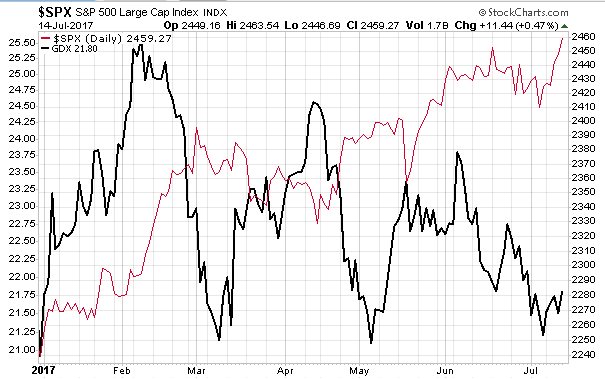 Falls jemanden eventuell doch die Wirklichkeit interessieren sollte: der "stürmische Anstieg des Goldpreises und insbesondere der Minen" im Vergleich zu den US-Aktien im Jahr 2017 hier mal im Bild.