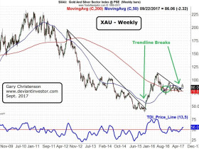 Auch diese sind vs Gold in den Vorjahren ausserordentlich zurückgefallen. 3 Charts zeigen die längerfristige Entwicklung XAU : Gold und je einen monatlichen und wöchentlichen Chart des XAU, erstellt von The Deviant Investor aka Gary Christenson: Nicht neu und verschiedentlich erörtert :Die Minen sind immer noch billig.
