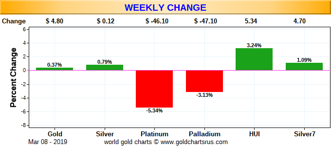 In meinem Depot habe ich einen Wochenvergleich der Edelmetalle und Minenindices hereingestellt: Depotstruktur -- Märkte und Edelmetalle im Vergleich