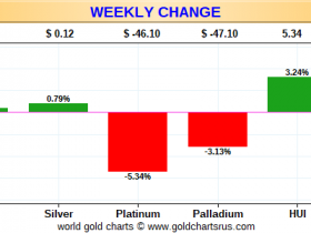In meinem Depot habe ich einen Wochenvergleich der Edelmetalle und Minenindices hereingestellt: Depotstruktur -- Märkte und Edelmetalle im Vergleich