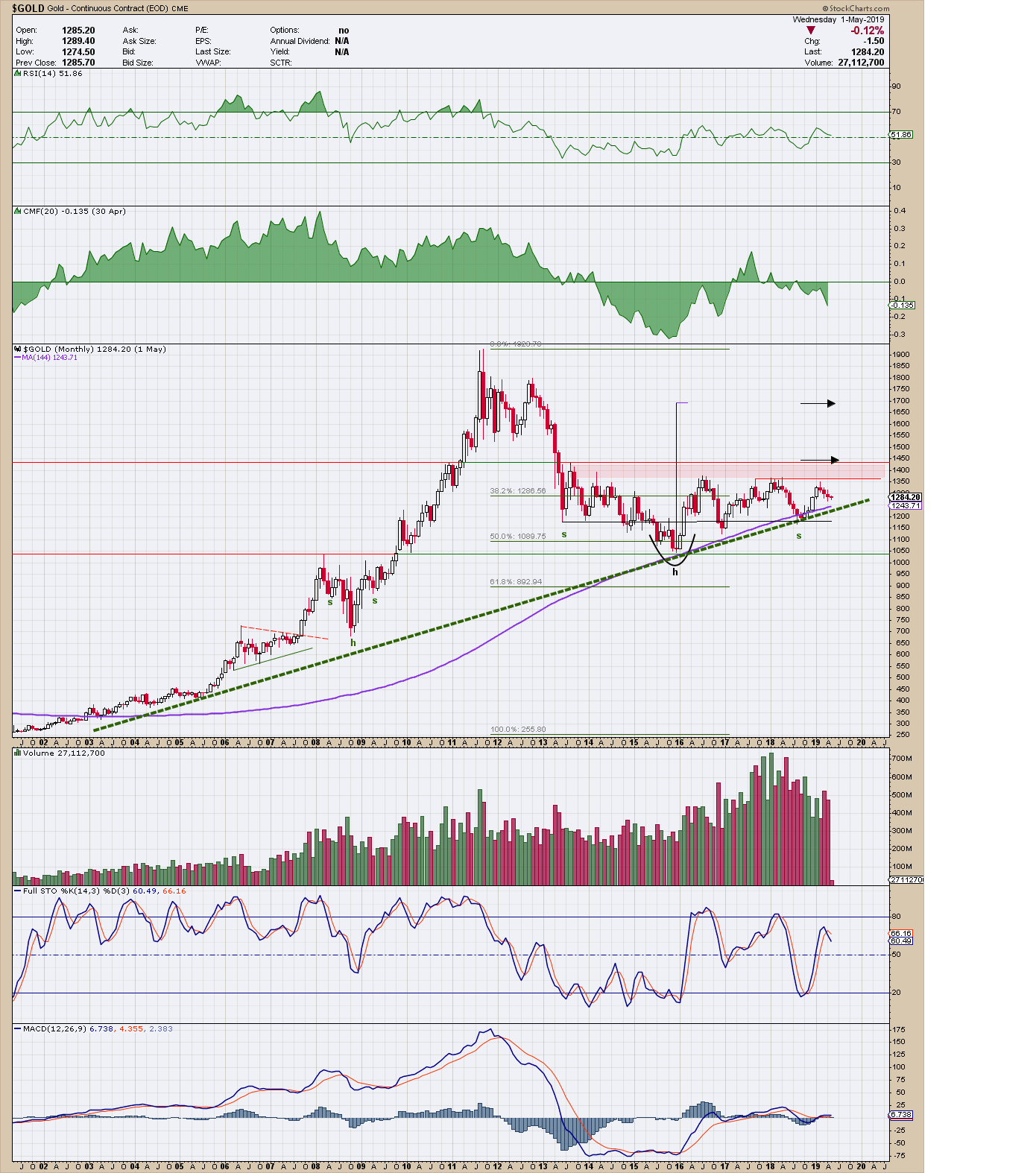 Ein Fundstück aus der Chart School / Public List von StockCharts.com. In diesem Chart wird Alf Field erwähnt und zitiert, ein damals bekannter Elliotter, den ich vor Jahren zitierte. Er hatte hoch, 40 % seines Familienvermögens, in Gold und Silber sowie Minenaktien investiert zu frühem Zeitpunkt.