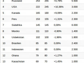 • Südafrika stellt einen Sonderfall da. Ob ausschließlich weiß ich nicht, aber hauptsächlich dürften die Produktionsrückgänge an politischen Unsicherheiten und immer höheren Auflagen liegen. Die aktuelle Regierung kann als kommunistisch bezeichnet werden, mit entsprechenden Tendenzen zur Enteignung und Gängelung von Privatunternehmen/personen. Im Rohstoffbereich wurden in der Vergangenheit schon mehrfach Eigentumsübertragungen von den eigentlichen Besitzern an Günstlinge des Systems vorgenommen. Auch unendliche und immer wiederkehrende Streiks belasten deren Minenumfeld erheblich. Dies alles hat natürlich auch Auswirkungen auf die Investitionsbereitschaft. Aus diesen Gründen sind für mich afrikanische Minenen im allgemeinen und süfafrikanische im speziellen seit längerer Zeit ein absolutes no go.